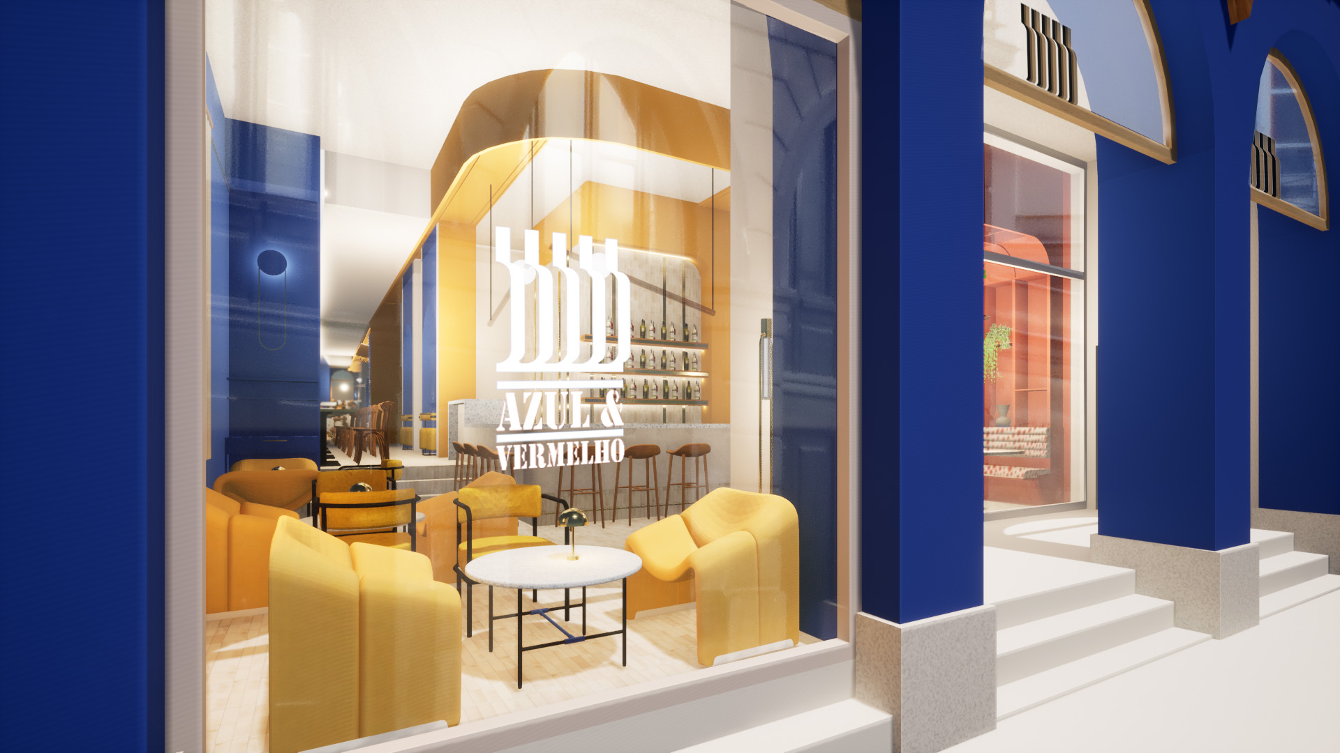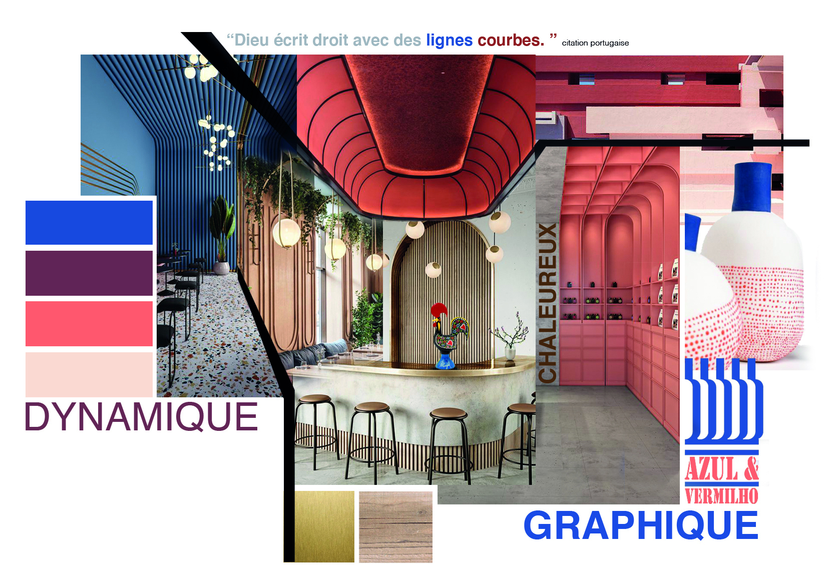 Nous avons conçu le concept du restaurant Azul & Vermelho à Angers, une brasserie proposant une cuisine portugaise traditionnelle revisitée, comme la célèbre assiette de churrasco.